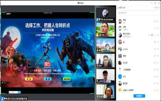 原力数字科技公司人才发展中心总监李春龙对此次交流会充满期望,表达了与人文学院建立实质性长期合作、携手共进、共谋发展的愿望。原力科技人才发展中心副总监刘玉玲就数字文化产业未来的发展路径做现场汇报,对企业文化、发展布局、资本实力,公司内部组成、作品输出,开放岗位、员工培养模式及晋升通道等方面做了耐心细致的讲解,对同学的职业发展与规划提出建议,分享了工作经验与就业心得。最后,人才发展中心职业规划经理王婷婷与同学们进行了积极的交流互动。