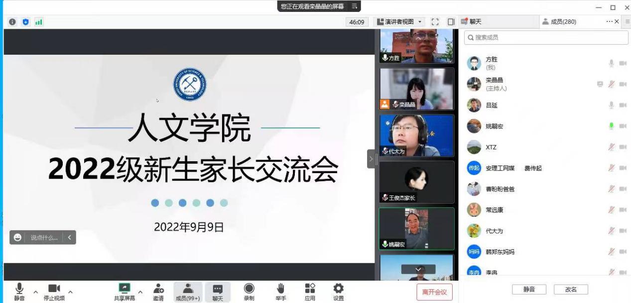 “云”上携手赴前程 与“理”共创新辉煌 ——人文学院召开2022级新生家长线上见面会