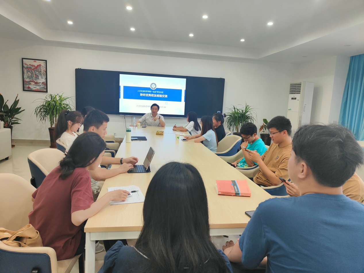 5月30日下午,为发挥朋辈引领作用,人文社会科学学院邀请政治学与行政学专业2018届毕业生校友陈正辉做客学院“一站式”学生社区平台分享学习、考研经验。学院领导班子、学工队伍以及2020级政治学与行政学专业学生参加了本次经验交流会。