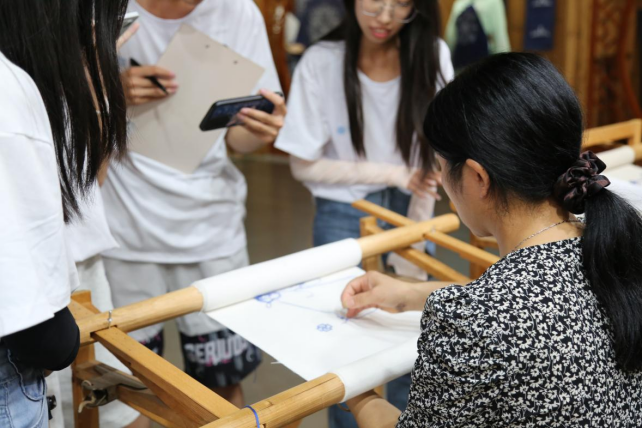 团队成员跟着陈老师学挑花(摄影:汪应康祖鸿宇)