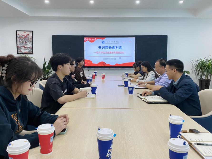 推动“一站式”学生社区建设是落实“立德树人”根本任务的重要举措。为深入探索完善学校“一站式”学生社区建设,了解学生对“一站式”学生社区建设的意见和建议,深化学生社区的育人功能,10月31日下午,人文学院在崇智楼A321举办第四期“书记院长面对面”活动,活动主要围绕“一站式”学生社区建设开展座谈。学院党委书记王大贤、院长方胜、党委副书记周雪晴、辅导员以及学生代表10余人参与此次活动。活动特别邀请了学生处王冰洁老师参加。