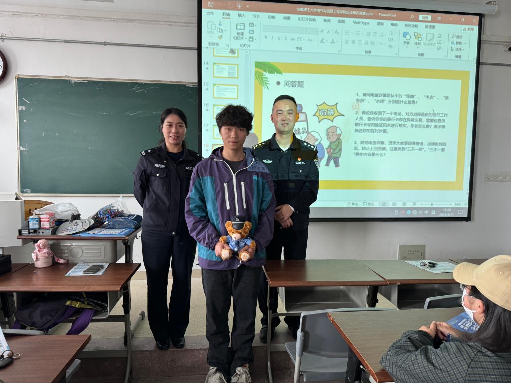 同学们积极踊跃地参与到反诈知识竞答环节,民警们也精心准备了宣传单和小礼物发放给同学们,现场气氛热烈。本次讲座进一步激发了同学们学习反诈知识和技能的积极性,增强了学院师生的反诈防骗意识。