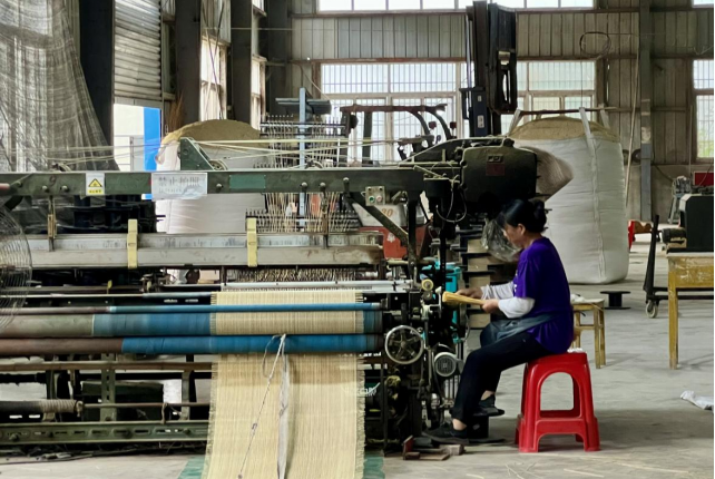 座谈会结束,团队来到金寨中集新材科技发展有限公司进行更深入的实地调研。同学们在公司人员的带领下参观了竹子加工的过程:竹子历经二十余道工序,经过先进设备锻造,最终成为集装箱、客货车地板。地板因竹之弹性而坚韧不摧,因竹之防腐而恒久稳定,生动诠释了竹子的材质优势。团队成员聆听企业人员细致讲解,领悟竹子径向切法与旋向切法的奥秘,探索竹材加工的深层技艺。手工竹编的演示更是引人入胜,一挑一压,一线一纹,皆是工匠精神的传承,亦是“以竹代塑”理念的具象展现。
