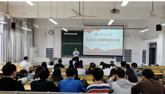 近日,人文学院在明理南110举办2025届毕业生欢送会,学院领导班子成员、毕业班辅导员以及全体在校毕业生参加会议。