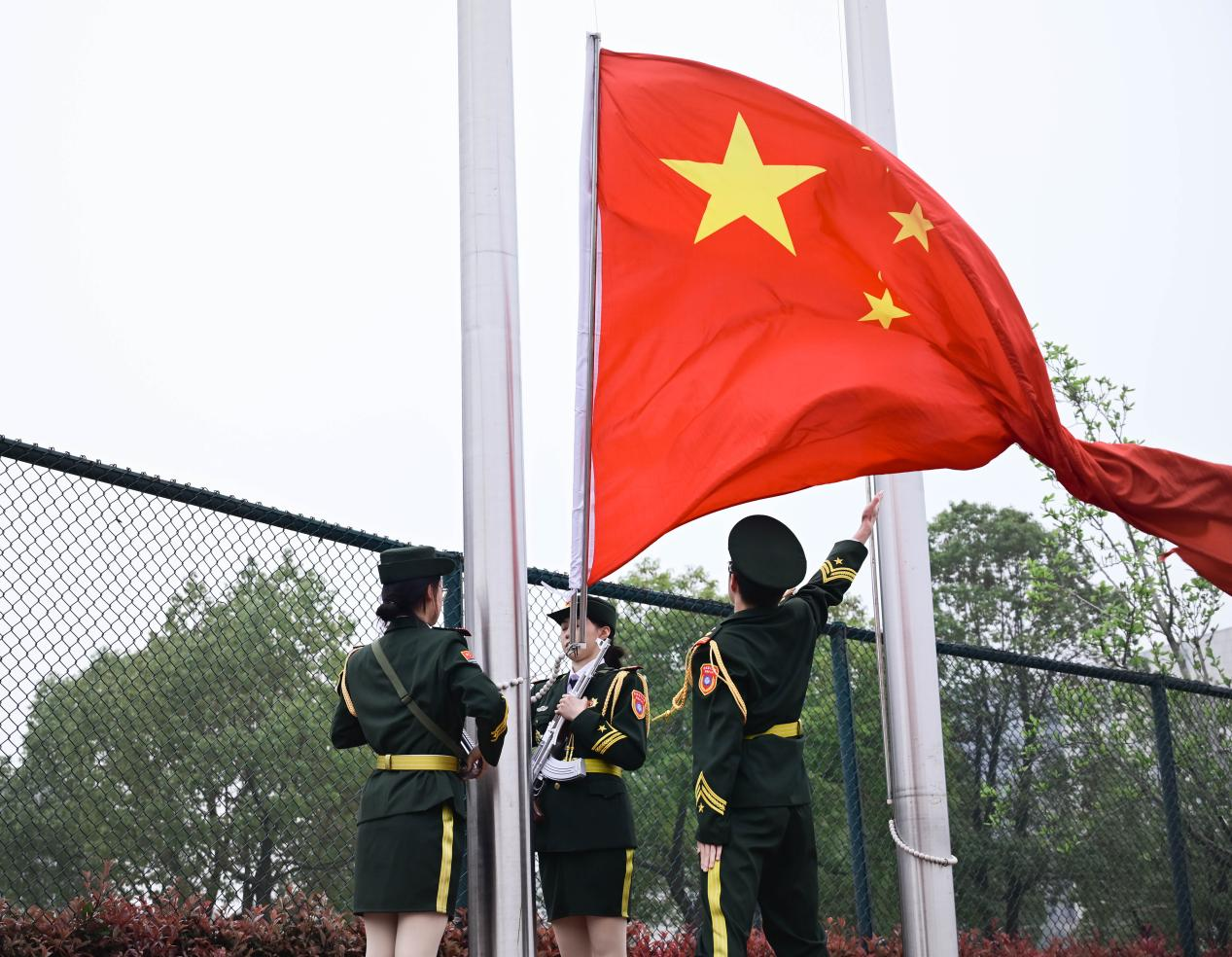 上午7时整,升旗仪式正式开始,伴随着雄壮激昂的《义勇军进行曲》,五星红旗冉冉升起。全体师生庄严肃立,向国旗行注目礼,齐声高唱国歌,向伟大祖国表达崇高敬意。