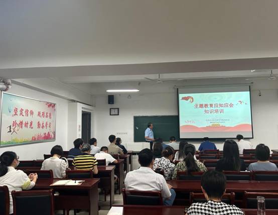 为进一步推动学习贯彻习近平新时代中国特色社会主义思想主题教育走深走实,6月29日下午,人文学院在崇智楼A333教室举办主题教育知识培训。培训由学院党委书记王大贤主讲,全体教职工党员参与。
